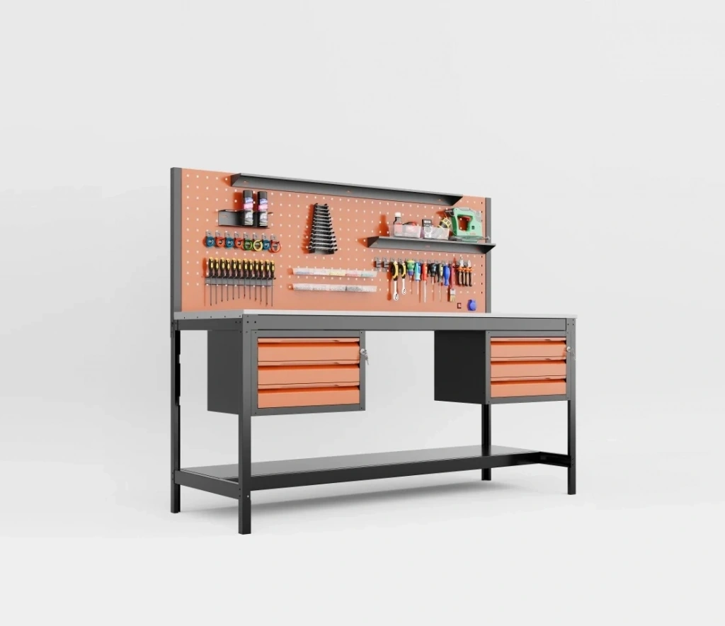 2 metre genişliğindeki çalışma alanı ve 6 çekmeceli yapısı sayesinde, el aletleri ve ekipmanların düzenli şekilde saklanmasını sağlar. Demonte yapısı sayesinde taşıma ve sevkiyat avantajı sunar. Günlük yoğun atölye kullanımına uygun, pratik bir çözümdür.
