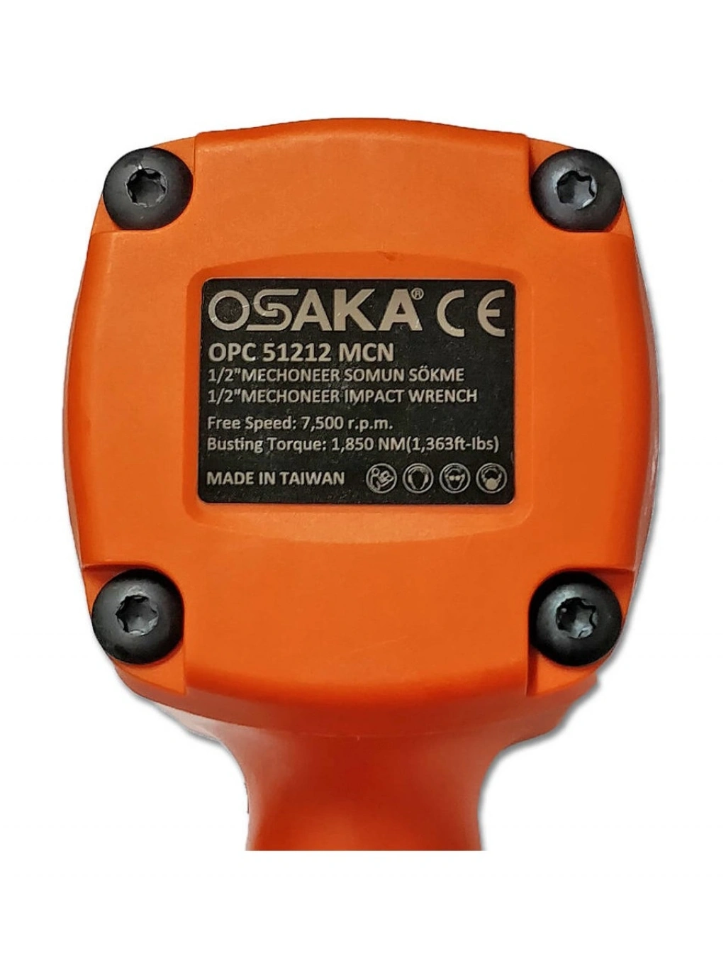 OPC 51212 MCN 1/2" SOMUN SÖKME 1850 NM Osaka OPC 51212MCN Havalı Somun Sökme 1/2" 1850Nm MECHONER Serisi Dünyanın En Güçlüsü1850 Nm sökme torkuyla dünyanın en güçlü 1/2" somun sökmesi OPC 51212MCN muadillerine göre %80 daha uzun kullanım ömrü ve %40 daha düşük titreşim seviyesine sahiptir. Böylece bakım maliyetleri düşer ve operatör konforu artar. MECHONEER ÇEKİÇ SİSTEMİ Uzunluk: 172 mm Civata Çapı: 22 mm Soket Karesi: 1/2" Max. Tork: 1.850 Nm Boşta Devir: 7.500 Rpm Hava Tüketimi: 200 lt/dk Hava Giriş Nipeli: 1/4" Hortum Çapı: 10.00 mm Çalışma Basıncı: 90-115 psi (6.2-8.0 atü) Ağırlık: 2 kg
