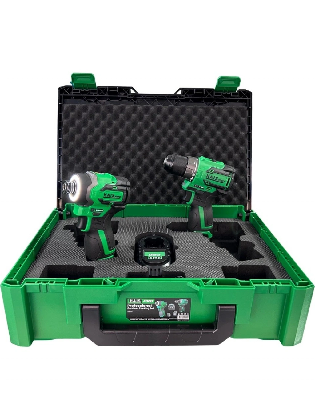Hais Pro yeni set. Tek çanta içerisinde 2 adet profesyonel akülü makine ve 2 adet 2 amper akü + şarj cihazı.