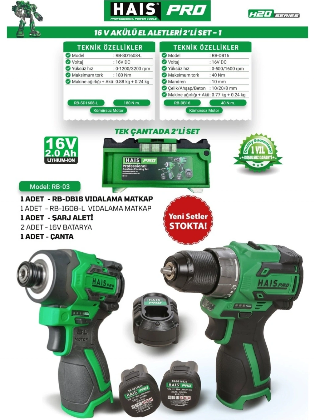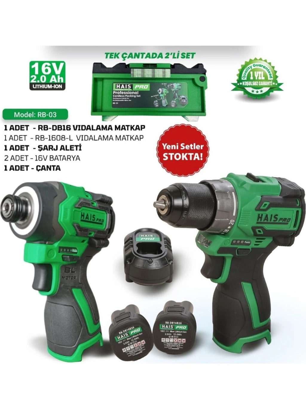 HaisPro Akülü Set - 2'li Profesyonel 16V Akülü Set + 2X2 Ah Çift Akü - RB-03