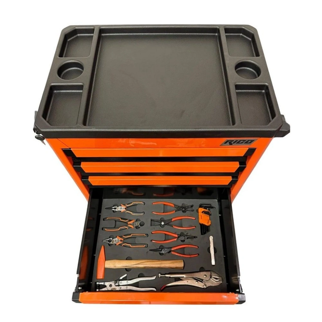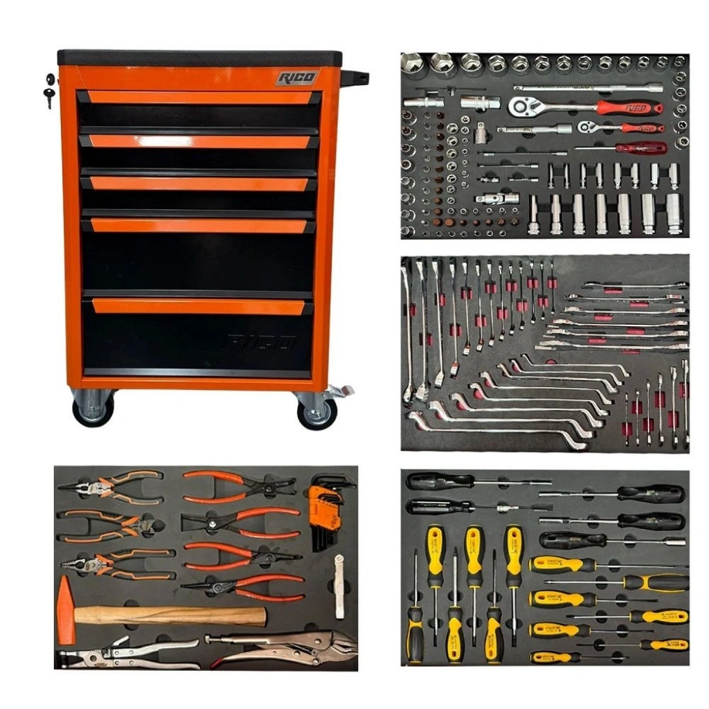 | 4. Çekmece | Pense ve Özel Aletler: Kısa Allen Anahtar Seti, Ayarlı Pense, Kelepçe Pensesi, Sekman Pense Seti (Düz/Eğri, İç/Dış), Steel Pense, Yan Keski, Kargaburun, Sentil, Çekiç. |